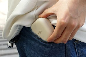 充電ケースにも抜かりはなし。スマートフォンアプリのアイコンを意識したのか、四隅に丸みを帯びた“角丸”四角形のケースは、細かいサンドブラスト仕上げのようなマット調で手触り良好! 磁石の働きで開け閉めする感触が心地いい。