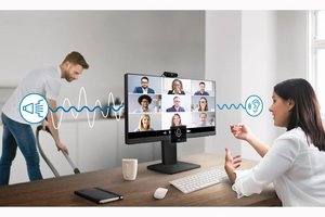 最近のPCモニターのトレンドとして、リモートワークを考慮した機能が増えていることも押さえておきたい。たとえば、通話ノイズキャンセリング。PCモニター内蔵のマイクを使い音声通話を行うと、快適な通話の妨げとなる周囲の雑音を低減してくれるという便利機能だ。ワイヤレスイヤホン/ヘッドホンでも多く採用されているが、音声通話のつど着け外しするのは面倒なもの、リモートワークでは大いに力を発揮してくれそうだ。