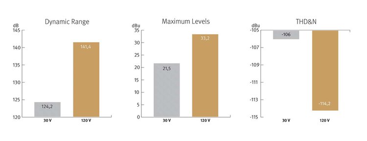 なかでも、本機搭載のSPL根幹技術となるのが120V技術「VOLTAiRテクノロジー」や「DLP120アナログローパスフィルター」である。VOLTAiRテクノロジーは、 ICベースの半導体オペアンプの4倍にもあたる±60ボルトの直流電圧で動作する独自開発オペアンプ「SPL 120V SUPRA」を用いた技術だ。±60ボルトという高い内部動作電圧によって高いヘッドルームを確保することで、最適かつ安定した動作範囲を確保して「心地よく、自然で、リラックスしたサウンド体験」を実現するとしている。