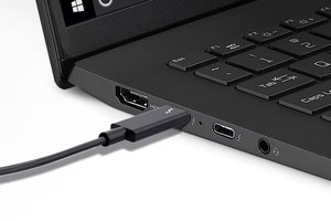 ノートPCは接続性も重要で、特にUSB Type-C端子の仕様では、Thunderbolt 4やUSB 4.0など、トレンドの規格に対応しているかによって、ケーブル1本繋ぐだけでできることが格段に増える。例えばThunderbolt 4対応であれば、最大40Gbpsのデータ転送のほか、4K/60Hzなどの映像出力、さらに給電・充電など、幅広い機能が使え、利便性が一気に高まる。