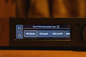 空間にリアルな音像を描くことが好きであれば、フィルターモードをHQガウスにすると良いでしょう。楽器や声のエッジを明瞭にするところがあります。オーディオ愛好家が好きな音かもしれません。一方で、HQアポタイジングでは、音の立ち上がりの強調感や音のエッジを感じさせず、ナチュラルな音で倍音も豊潤に聴こえてきます。どちらが良いという訳ではなく、再生音源で変えると良いと思います。クラシック好きなら後者が良いかもしれません。