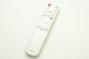 搭載されている機能も豊富で、AirPlay2やMiracastに対応しているため、iPhoneやスマホの画面のミラーリングなども可能。同社のアプリ「LG ThinQ」を活用すれば、スマホからの操作や音声認識機能の利用も可能で、Bluetooth対応も果たしているためワイヤレスのキーボードやマウスで操作することもできる。同梱されているリモコンは、シンプルでコンパクトだ。