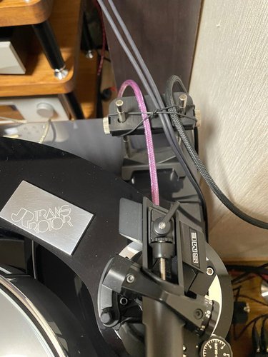 その解決策として、私はトーンアームケーブルを「NCF Booster-Signal-L」で支え、付属のバンドで密着固定した。プレーヤーのキャビネットからの静電気も、アームからケーブルへと伝わると推察したからだ。