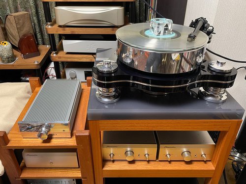 おそらくは愛用の電源ケーブルは樹脂製の外被で、両端端子も樹脂ボディであるから帯電していたと推察された。結果としてより滑らかな回転が実現したようで、プラッターの慣性力が高まった印象も受ける。