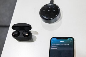 WiiMデバイスにはBluetooth送信機能もあるので、発売されたばかりのソニー「WF-1000XM5」を組み合わせてみた。アナログプレーヤーはそのままで、受信側のWiiM Proに「WF-1000XM5」を組み合わせる。ちなみにiPhoneで「WF-1000XM5」を軽く試してみたが、ノイキャンの効きも音質も良く、最新機種らしい優れたイヤフォンだ。