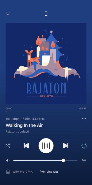 それぞれのWiiMデバイスには入出力の状態やそれぞれで再生している楽曲が表示される。Roonのゾーンに似た概念とも言える。それぞれのWiiMデバイスをクリックするとそのWiiMデバイスで再生する楽曲のリストを選択する画面が現れる。ストリーミングサービスやローカル音源が選択できるが、各WiiMデバイスで別々に再生が可能な点もRoonのゾーンに似ている。