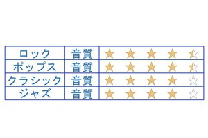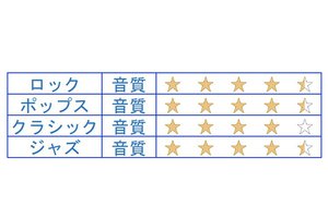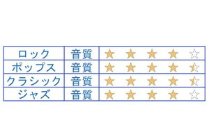 全ての周波数帯域の音圧が高いポップスやロックなどのソースを聴いても歪み感がなく心地よい音で再生されるため、長時間聴いても疲れにくいサウンドといえる。