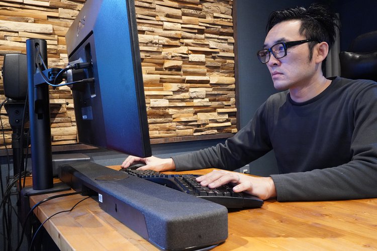 そこで試しに、REACTをPCディスプレイの下に設置し、PCと光デジタル接続して体験してみた。ディスプレイのサイズによってはサウンドバーの大きさが気になるが、32型以上の大型ディスプレイも増えてきているので、そういったものと組み合わせれば違和感も少ないと思う。