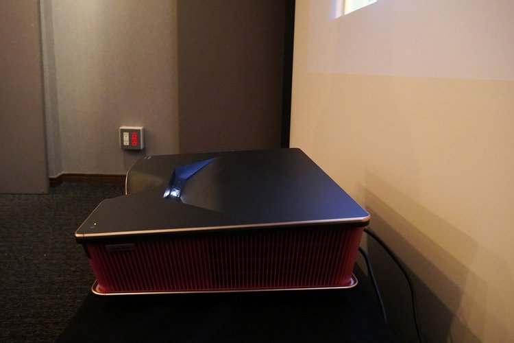 Harman/Kardonスピーカー搭載によるサウンドの素晴らしさも特筆モノ。『トップガン・マーベリック』のダークスターの離陸シーンでは、プロジェクターをスクリーン直下に設置しているにも関わらず試聴室の空間を満たすような低音で再現。