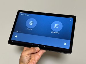 自宅でも視線による操作を試した。操作を正確に認識させるためにはFire Max 11タブレットをしっかりと固定する必要がある。タブレットを手で持った状態で操作すると、視線を認識する数秒の間にタイルの選択が外れてしまったり、意図していないタイルが選ばれたりすることがあった。タブレットをスタンド等に乗せると視線の認識が安定した。