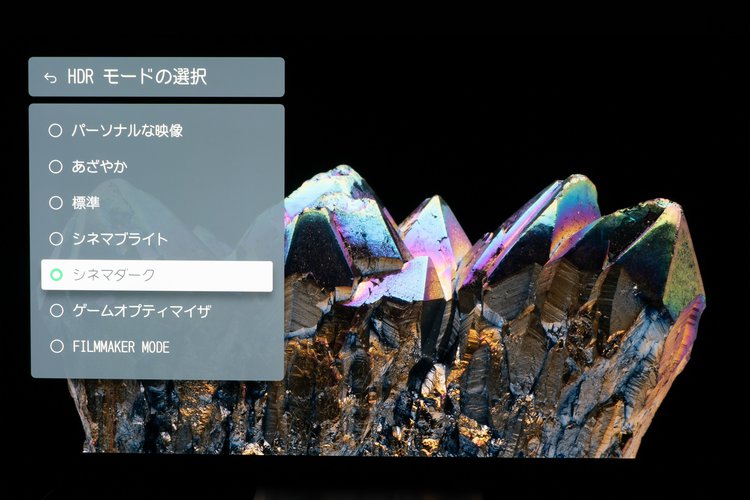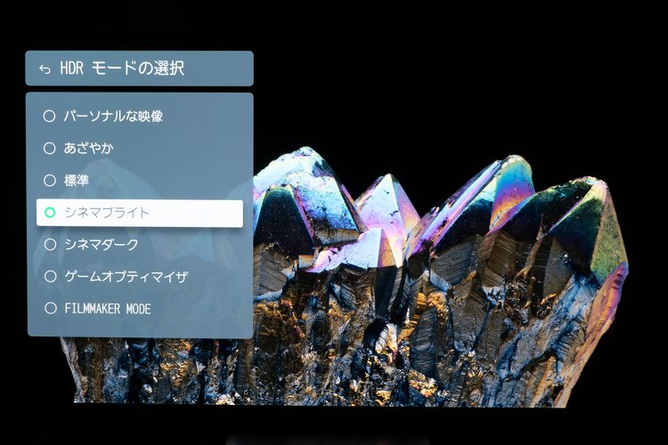 次に4K UHD BD『アバター:ウェイ・オブ・ウォーター』を「シネマブライト」で視聴。高輝度部分が飽和せず、階調が豊かでニュアンスに富む。陽光を浴びて輝く水しぶき、逆光に入った表情の翳り、細部に光がきらめく生々しさは、従来モデルのダイナミックレンジを逸脱し、CG描画を忘れさせる実景感覚に溢れている。