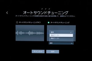 音質もチェックしていこう。4K UHD BD『TAR』は、音楽家を主人公とした映画と現代版ニューロティックムービーの二面性を持つ作品だが、チェリストのオーディションシーンは、広がり豊かで歪みの少ないHi-Fiサウンド。リハーサルシーンは、音場が拡大しオケの音が聴き手の前方に大きく広がる。チェロ独奏がセンターに定位して倍音も豊かで、音楽映画としての本作を引き立たせる。「AIサウンドプロ」をオンにすると、音場がほぐれ、効果音が画面に貼り付かず回り込むことで聴き手を包囲、巧緻を極めた音によるサスペンス演出を外部サウンドシステムなしで実現してみせた。