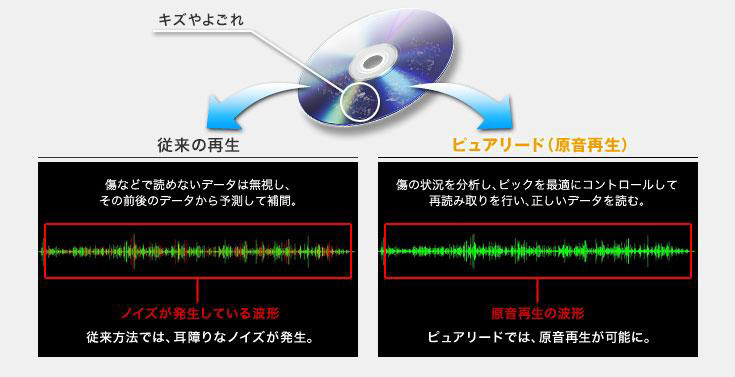 音源データの確保を優先し、エラー補正が発生する可能性があってもあえて読み取りを行うマスターモードも選ぶことができるし、PureReadの機能そのものをオフにすることも可能だ。