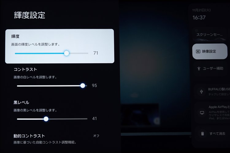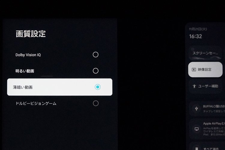 Dolby VisionとDoby Atmosを採用した作品『シン・ウルトラマン』も観てみよう。今回は、ドルビービジョン・ダークに相当する「薄暗い映画」モードで視聴すると、映像への没入感はそのままにバランスの良さが得られる。
