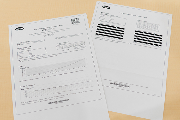 またBenQが展開するAQCOLORシリーズの製品は、出荷時に1台1台、個別キャリブレーションを実施しており、それはPD2706UA/PD2706Uでも変わらない。製品に同梱されるレポートはその証だ。さらにCalMANとPANTONEという外部のカラー認証も取得しており、客観性も備えている。