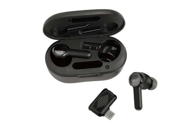Bluetooth接続とは別に、低遅延と高い安定性を持つ2.4GHzワイヤレス接続に対応したゲーミングイヤホン。PCのソフトウェア「JBL Quantum」を使うことで、PC接続時では独自のサラウンドサウンドも再生可能です。ノイキャンや外音取り込みにも対応。マルチに使えます。