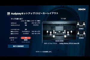 新生オンキヨーのAVアンプ第一弾として登場したモデルで、FIRフィルターを活用した「Dirac Live」での音場補正機能を標準装備。従来からの「AccuEQ」による自動音場補正も選択可能だ。試聴ではAccuEQを使用。