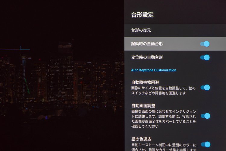 XGIMIならではの部分でいえば、3D ToFセンサーとCMOSセンサーを利用し毎秒1万データセットという速度で投写面を分析、環境に応じて設定変更する「ISA」だ。フォーカス調整も台形補正もフルオート、電源投入後壁に向けて設置するだけで準備完了だ。しかも障害物自動回避機能や壁色自動適応、スクリーンサイズへの自動アジャストなども備える最新版の「ISA 3.0」、幅広い設置をカバーする。投影方向/距離を変えた途端に自動調整が始まるから、面倒は一切ない。