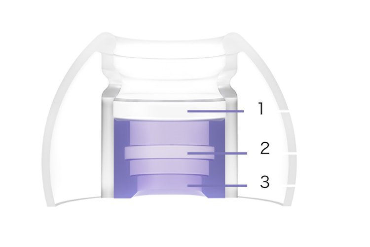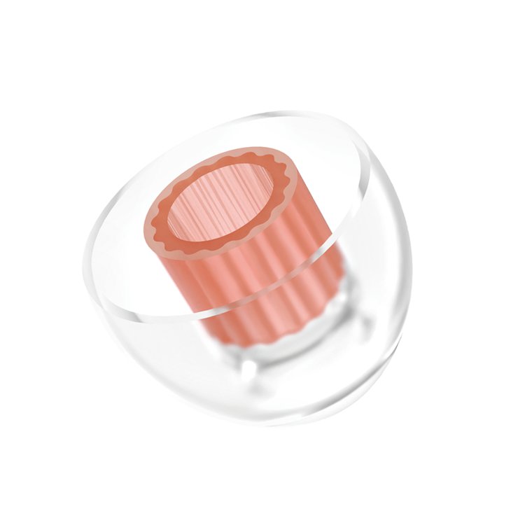 チューブ内径は対応可能範囲5.0-6.0mmで、軸となるチューブの内側と外側で硬度の異なるシリコンを円周に沿ってウェーブ状に形成するダブルウェーブ加工を採用。軸の内側は適度な硬さを持たせてイヤホンのステム部をしっかりと抑え込む構造だ。また開口部は広めに設計されており、音像のディテール再現、楽器の繊細かつ豊かな表現力を引き出すとともに、低域から高域まで伸びやかな音質を実現している。