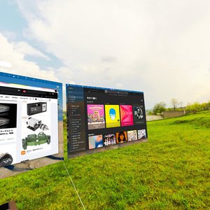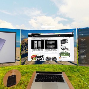 Meta Quest 3の主な用途は立体視の没入型ゲームやVRChatのようなVRソーシャルサービスを楽しむことだが、PCにペアリングすれば没入視聴型のモニター的な使い方ができる。対応するデスクトップ環境はmacOS、Windows、Linux。ChromeOSには非対応で、iPadやAndroidタブレットもつなげられない。
