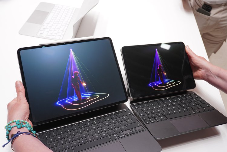 iPad Proの実機は圧倒的に薄く軽かった。筆者も長く12.9インチのiPad Proを使ってきたが、まだiPadをスリムにできる余地があったことにひたすら驚き、タブレットとして革新的なサイズ感に魅了された。