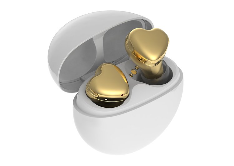 甘すぎず洗練されたハート型シェイプが目を引く完全ワイヤレス。耳の小さな方でも収まりやすい、角のないラウンドフォルムを採用。充電ケースも小ささと軽さにこだわって設計されており、ミニバッグにもすっぽりと収まります。コスメと一緒に持ち歩いても汚れがつきにくいクリアハードケース付き。