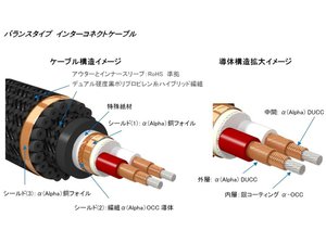 XLRとRCAには「Project V1 Power Cord」と同様に、3層同心円構成の銀コーティングα-OCCとα-DUCC銅線が使用され、撚り方向も管理されている。インナーとアウタースリーブで構成され、徹底したシールドと振動低減を実現した。内部絶縁体も静電容量を低減するポロプロピレンやポリエステルファイバーを使用している。