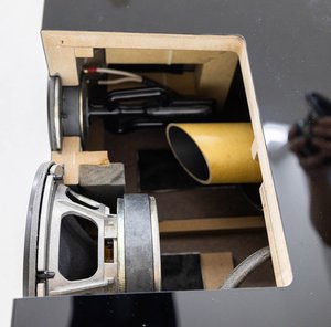 TRUE SOUNDの第2要素、“サウンドイメージ”に関わる技術は、同社グランドピアノと同じ黒鏡面ピアノフィニッシュが施されるキャビネット内にあるが、これもNS-5000から継承したものだ。まずトゥイーター背後には不要共振を抑える特許技術R.S.チャンバーを装着する他、上下・奥行き方向の定在波を打ち消す共鳴管構造体アコースティックアブソーバーを天板と底板の内側へ2本設置。これは吸音材では吸いにくい周波数を効果的に吸音できるうえ、大量に吸音材を用いることでの音質的デメリットを解消できる。