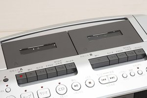 希少なダブルカセットデッキを備えたCDラジカセ。大きめのボタン配置や日本語のボタン名称印字を備えた親切設計となっている。CDやラジオの再生、カセットの録音再生に対応。とりわけカセット機能は、ハイポジションテープの再生やカセットからカセットへのダビング録音にも対応するなど充実している。