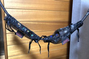「OP-W31」はスピーカーケーブルに巻きつけるアクセサリー。長波や磁気波の干渉を抑えるのだという。4×4=16枚のステッカーが貼られた面をケーブル側に向ける形で巻きつけ、両端を紐で結べばOK。指示に従い右に2枚、左に1枚巻いて試聴した。