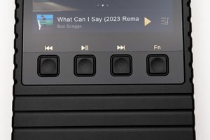筐体はCNC切削アルミ製。ONIXブランドの伝統であるブラックスクエアを基調としたデザインで、長押しでの電源スイッチも兼ねたボリュームノブも金メッキが施されている。ボディの両サイドはカッティングラインを設け、持ちやすさも考慮。3.0型有機ELタッチディスプレイは昨今のDAPの中では小さめだが、ディスプレイ下側には本機ならではの独自性となる4つの物理ボタンが配置されている。