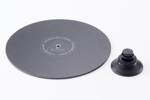本アイテムは、独BLACK FOREST AUDIO社のフォルカー氏とティグロンの共同開発にて誕生したもので、独国にて実用新案を取得済み。金属を極力使用せず、プレーヤーのスピンドルにしっかりとクランプする構造を実現している。カーボン入り特殊合成樹脂素材の採用で充分な剛性を確保しつつ、本体重量100gという軽量化を達成しているのも特徴といえよう。