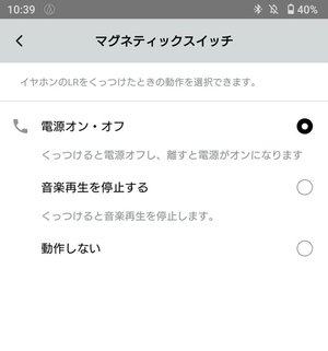 実際に使ってみるとこれが新鮮で、自宅で音楽を聴いている時、またポケットに入れてイヤホンを持ち出す時に便利で、操作が手軽なのもポイント。また、「ケースから出す」といった所作が無くなることで、コンテンツを最短・最速で楽しめるのも大きなメリットとなる。なお、マグネットでくっつけた際の動作はスマホアプリ “Connect” から変更が可能で、音楽再生を停止するだけにしたり、なにも動作を起こさないようにしたりすることもできる。