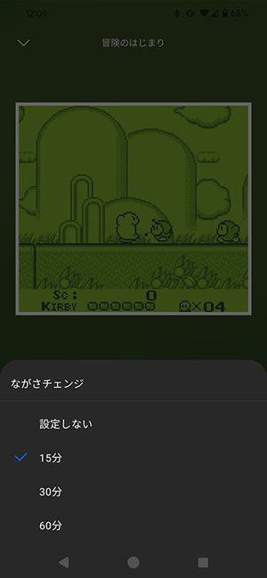 「ながさチェンジ」機能も搭載。通常の再生では楽曲はフェードアウトして終わるが、この機能をオンにすればゲーム中のBGMのように途切れることなく音楽が流れ続けるようにできる。同機能は「15分・30分・60分」の中から長さを設定可能だ。