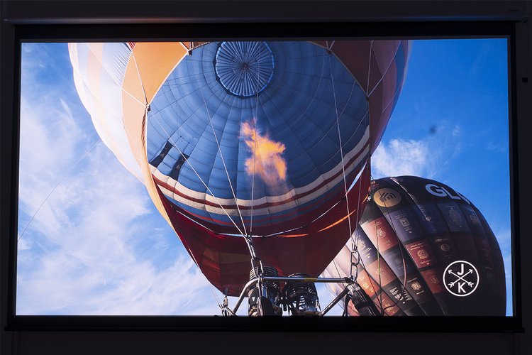 炎など、戦のシーンでの配色、対極的に暗く描かれる背景の緻密さなど、HD画質ではあるが情報量の多い描写も際立ち良く表現。特に背景が青や赤単色で描いたカットのビビッドさはコントラスト良く映える。このグラデーションのない単色を広範囲に投写する際、スクリーンの平面性が保たれていないと均一で鮮やかな発色が期待できない。
