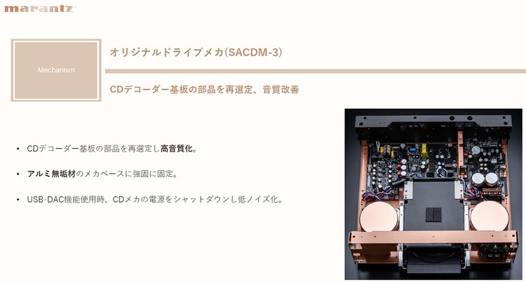 そのほか8層基板の導入や新設計HDAMの採用などが功を奏し、S/Nの改善幅は実に8dBを超えている。マランツがデジタルコンポーネントの開発で蓄積してきた技術を総動員することで、通常のアプローチでは成し得ないほどの劇的な音質改善を果たしたのである。