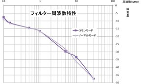 さらに注目は、フィルターだ。インレットコネクター(入力側)と一体化されているが、その内部には極太の並列コイルとコンデンサーが組み合わされている。特性としては、100kHzで約8dB、500kHzで約14dBのノイズ低減を行い、10MHzでは約33dB、30MHzでは約48dB低減する広帯域ノイズフィルター特性だ。