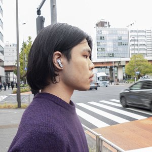ノズルとそこに装着するイヤーピースはオーバル形状を採用。そのオーバル型イヤピとスティック部分が、それぞれ耳穴と外耳に対してある一定の向きでのみ気持ちよくハマることで、正しい装着角度がわかりやすい。正しい装着はイヤホンのベストパフォーマンスを引き出す必要条件だ。