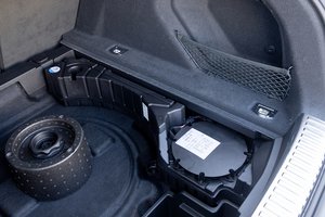 ラゲッジの床面を取り除くと、サブウーファーボックスとパワーアンプが姿を現わす。サブウーファーの振動板口径は200mmとのこと。