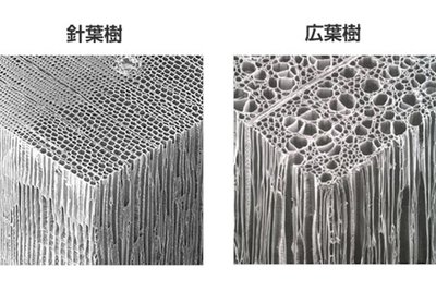 樹木は根から吸い上げた水を幹を通して枝葉に送るための維管束の集合で、顕微鏡などで見ると無数のハニカム構造の孔を持っている。この構造を利用して吸音材として活用するのが「SAHP」技術。フェイスプレートの内側には最適に設計された吸音孔が空いていて、ハウジング内部の音を吸音孔を通して樹木の孔に入り、最適な吸音が行われる仕組みだ。