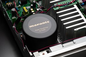 プリメインアンプ「STEREO 70s」はプリアンプ回路に、マランツ独自の高速アンプモジュール「HDAM-SA2」を用いた電流帰還型回路を採用。これにより繊細かつ情報量の豊かなサウンドを実現。さらに定格出力75W+75W(8Ω)のフルディスクリート・パワーアンプを搭載。パワーアンプ回路に電源を供給するブロックコンデンサーにはなんと「STEREO 70s」専用にサプライヤーと共同開発したカスタムコンデンサー(6,800μF×2)を採用。さらに電源トランスには大型カスタムEIコアトランスを採用することにより、高品位で安定した電源供給を実現している。