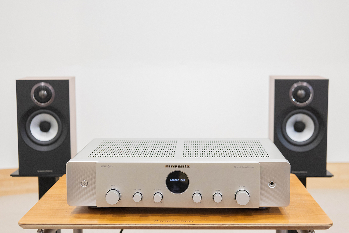 今回は基本システムとして、アンプにはマランツのHDMIセレクター搭載Hi-Fiステレオプリメインアンプ「STEREO 70s」(143,000円/以下すべて税込定価)、スピーカーにはB&W「607 S3」(132,000円)をチョイスした。合計すると275,000円。どちらも市場で人気の製品である。