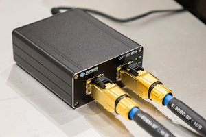昨今ネットワークオーディオ界をもっとも賑わせている製品ジャンルのひとつが「光アイソレーター」と言っていいだろう。通常は導体がメタルのLANケーブルで接続されるネットワーク機器であるが、光ファイバーを間に挟み込むことにより、ネットワークノイズを遮断して音質を改善できるということで、国内外の各社から光アイソレーターが製品化されている。