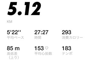 結果からいうとイヤホンだけでもApple Watchと遜色ないレベルで心拍数を計測してくれた。軽い坂道のアップダウンや、信号での停止に応じてリアルタイムで数値が変動している。「頑張って走っていた頃」の心拍数を参考値としながら、リアルタイムモニタリングを元に無理のないペースで5kmを走破できた。
