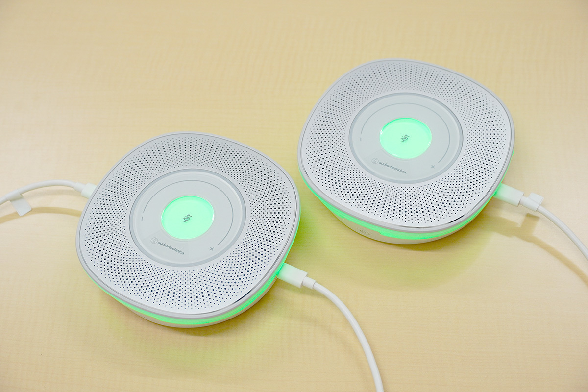 メーカー公式の推奨使用距離は半径1m、推奨人数は最大6人とされているが、記者が試した限りでは、スピーカーからの声を聞くだけならもっと離れていてもしっかりと聞き取ることができた。メーカーとしてあまり推奨はしないだろうが、オブザーバーのような出席者がいる場合でも1台でなんとか対応できそうな印象だ。