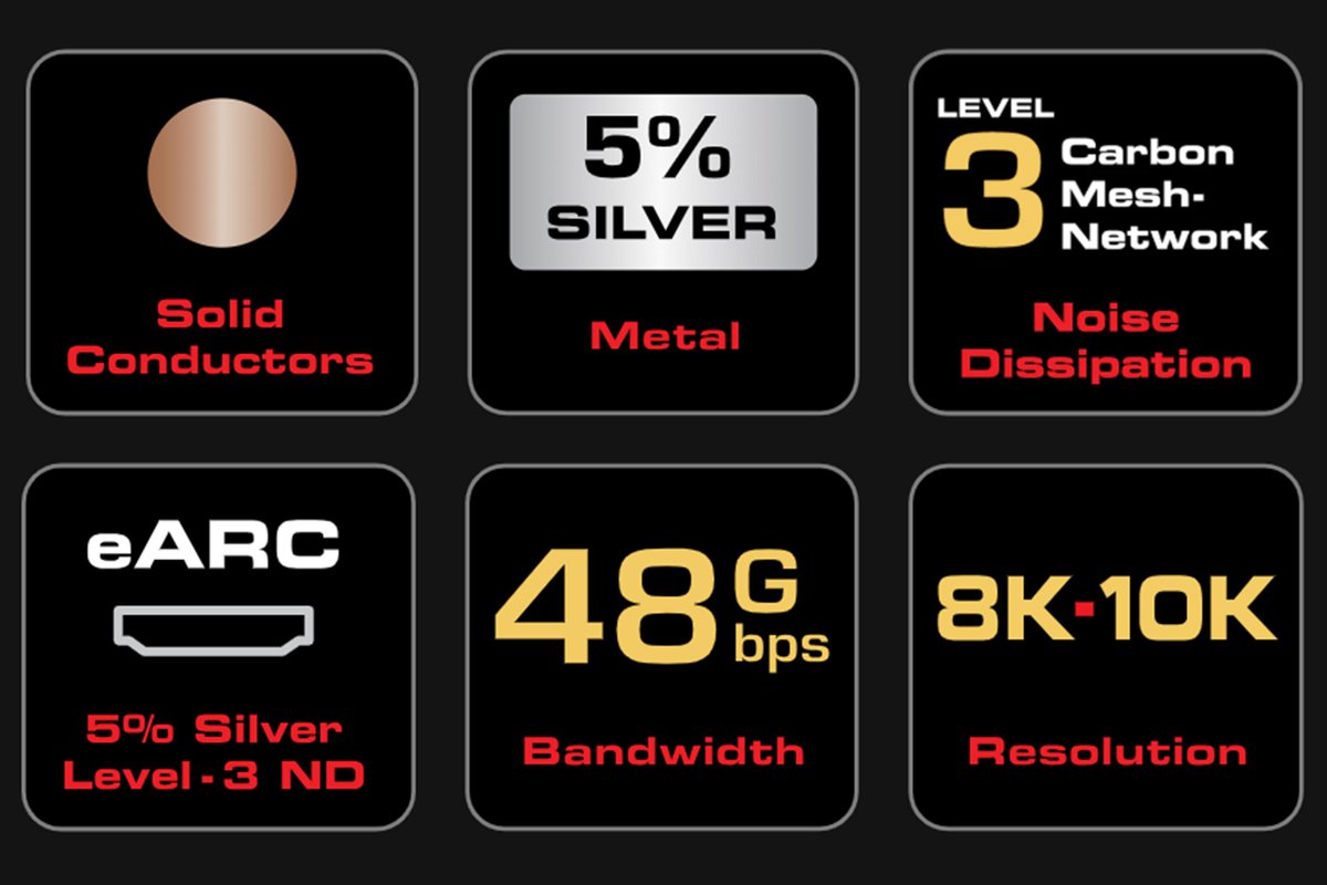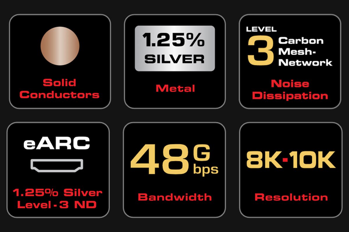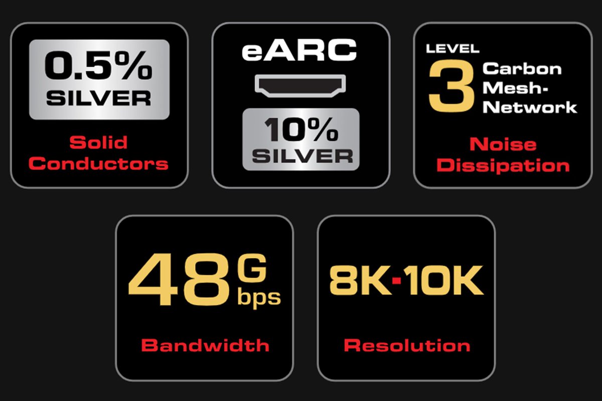 導体のシルバーコーティングがさらに厚くなり、上位モデルほどコーティングの均一な仕上げが難しくなる。主導体・eARC導体は5%シルバーコーティングLGC単線、グランド導体に1.25%シルバーコーティングLGC単線を採用。