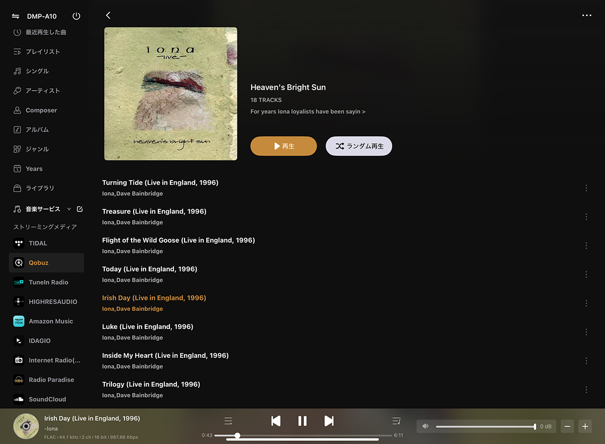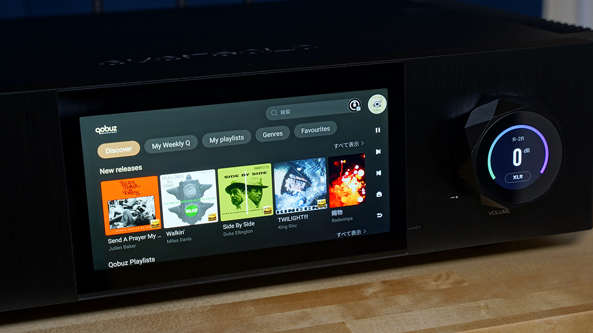 本機の試聴はローカルの音源(DMP-A10に装着したSSDに保存)とQobuzの二本立てで行った。今回は筆者のメインシステムに組み込む関係上、DMP-A10のプリアンプ機能は使わず音量固定出力とし、EQ類もすべてオフにしている。