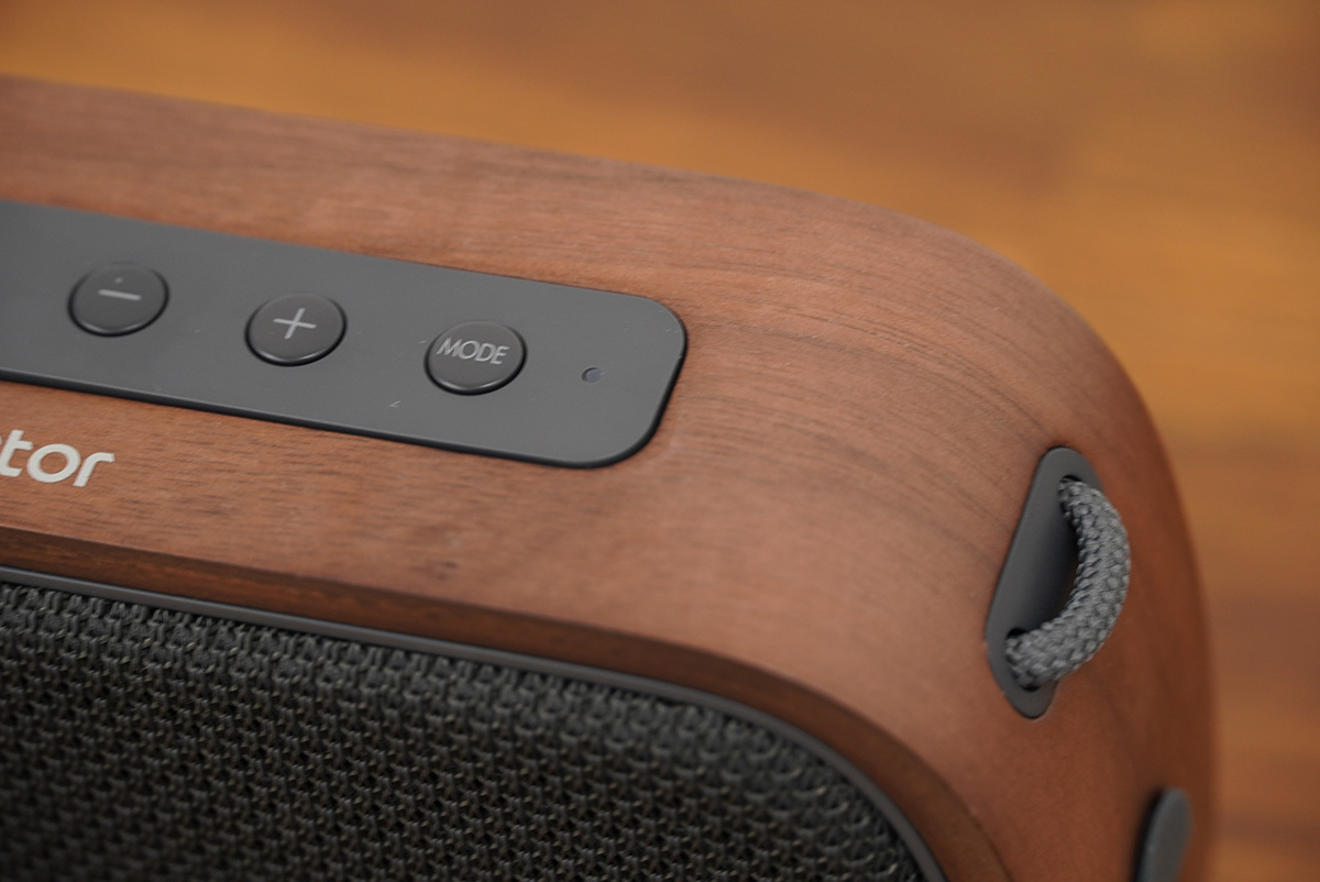 まずパッと目を惹くのは、その外観デザイン。幅166mm×高さ102mm×奥行き50mm、質量約570gのコンパクトなサイズに、天然木材を用いた温かみのあるフォルムが印象的だ。