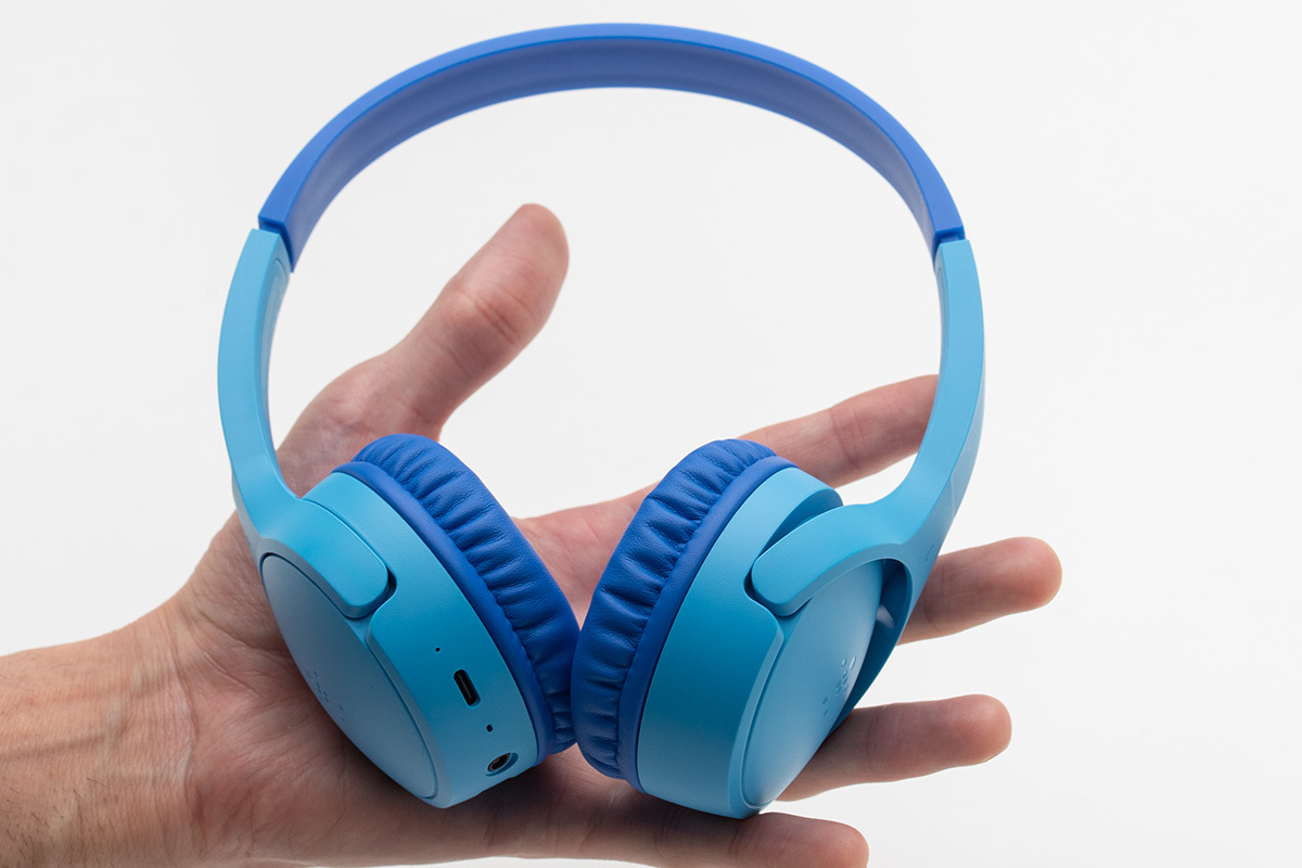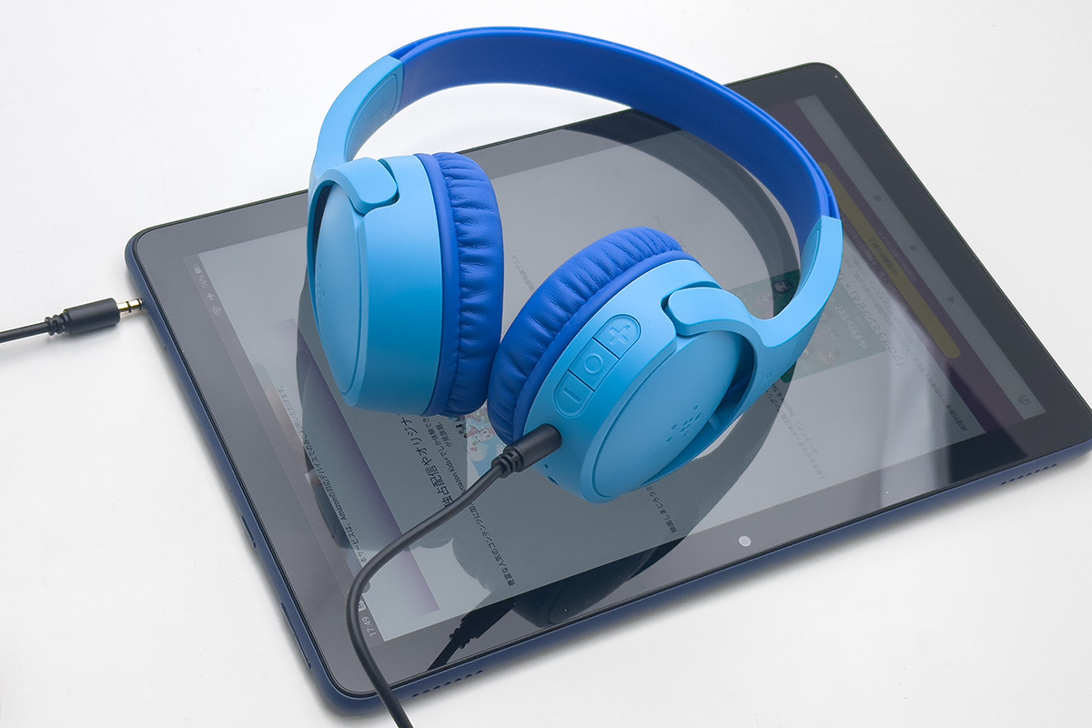 実際に手に取ってみると、大人用のそれに対して小振りなサイズ感も手伝ってか、丸みを帯びたフォルムがとてもキュートである。つや消しのマットな仕上げで、イヤーパッド及びヘッドバンド部とその他部分とで、2色構成となっていることも可愛らしい。試したサンプルはブルー色だったが、鮮やかで爽やかなカラーリングが目を引く。