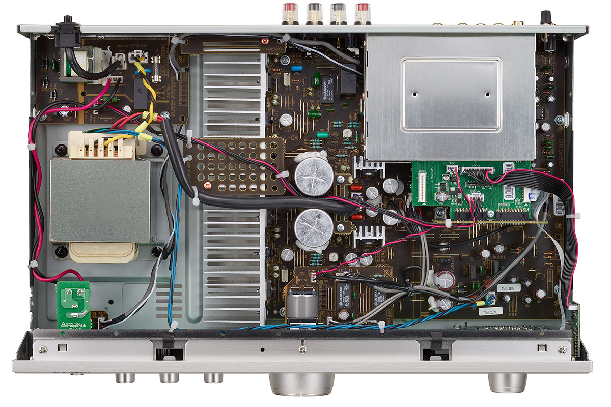 SPEC ●定格出力:45W+45W(8Ω、20Hz - 20kHz、THD 0.07 %)、70W+70W(4Ω、1kHz、THD 0.7%) ●S/N比(Aネットワーク):105dB(CD、NETWORK/AUX、RECORDER/入力端子短絡)、84dB:(PHONO MM/入力端子短絡、入力信号5 mV) ●周波数特性:5Hz - 100kHz(0〜-3dB) ●全高調波歪み率:0.01%(定格出力、-3dB時、負荷8Ω、1kHz) ●入力端子:RCA×4、PHONO×1、同軸デジタル×1、光デジタル×2 ●出力端子:RCA(RECORDER)×1、サブウーファープリアウト×1、ヘッドホン× 1 ●消費電力:190W(待機時最小0.3W) ●サイズ:434W×122H×307Dmm ●質量:7.4kg